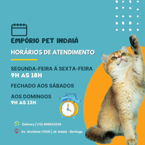 O Empório Pet Indaiá Bertioga é uma loja de produtos pet localizada em Bertioga, São Paulo. Fundada em 2010 por Carla e Marcos Oliveira, a loja oferece uma variedade de rações e acessórios para animais de estimação. Com atendimento personalizado, a equipe busca garantir a satisfação dos clientes e o bem-estar de seus pets.