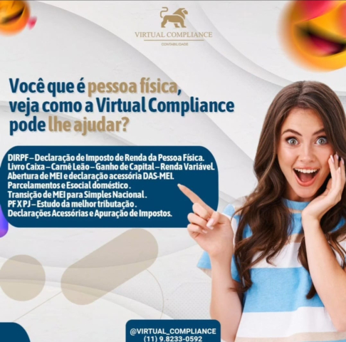 Virtual Compliance Contabilidade Somos uma empresa especializada em serviços contábeis de alta qualidade, com foco em gestão eficiente e resultados sólidos. Nosso compromisso está em oferecer soluções que priorizam a satisfação do cliente, acompanhando cada etapa de sua jornada empresarial. Com expertise em Abertura, Encerramento e Regularização de Empresas, Planejamento e Recuperação Tributária, além de Consultorias e Soluções Personalizadas, garantimos um suporte completo e estratégico para o crescimento sustentável do seu negócio. Na Virtual Compliance Contabilidade, unimos experiência, inovação e comprometimento para simplificar processos e maximizar resultados, proporcionando segurança e confiança aos nossos clientes. Conte conosco para transformar desafios em oportunidades e alcançar novos patamares.